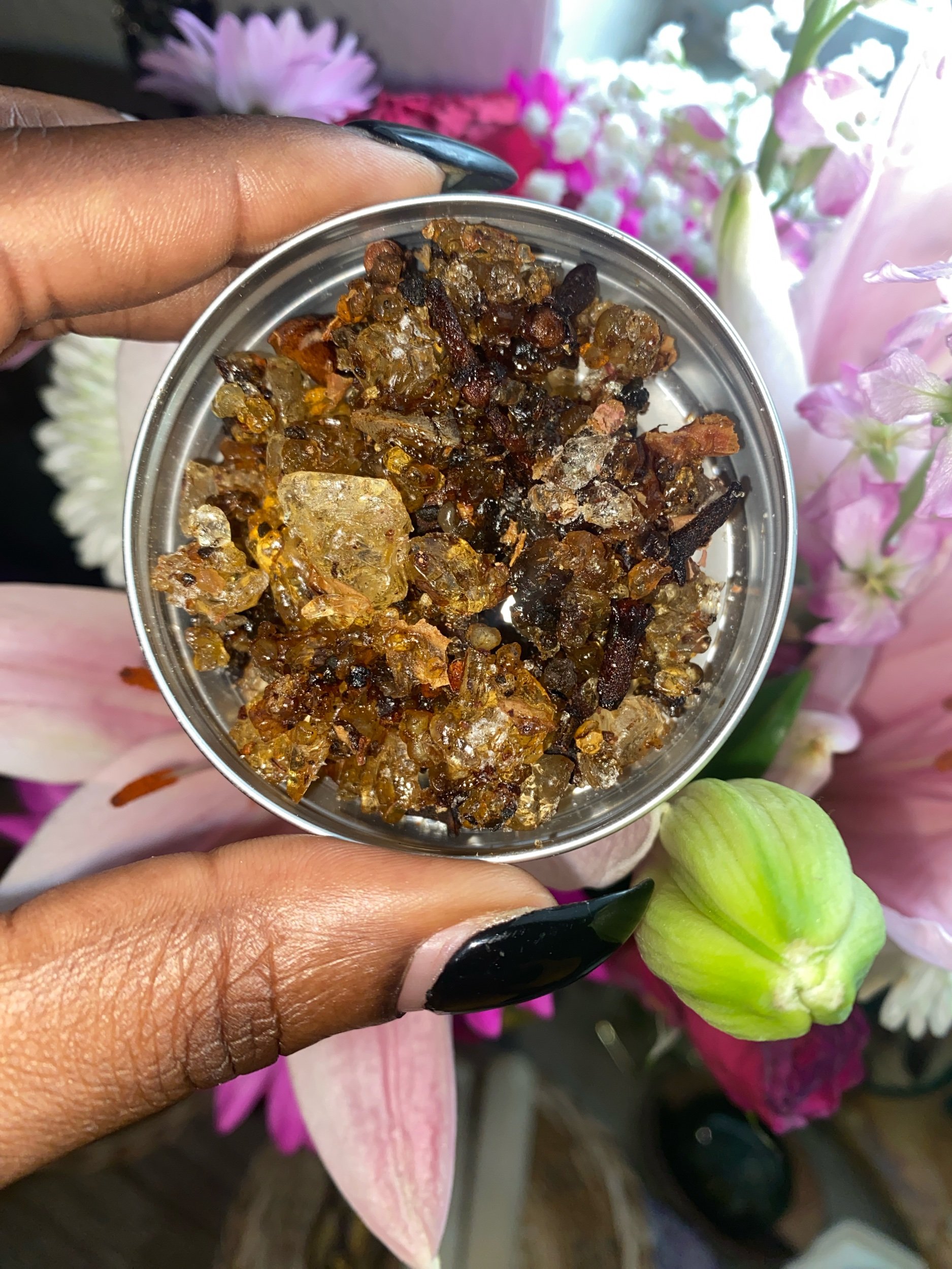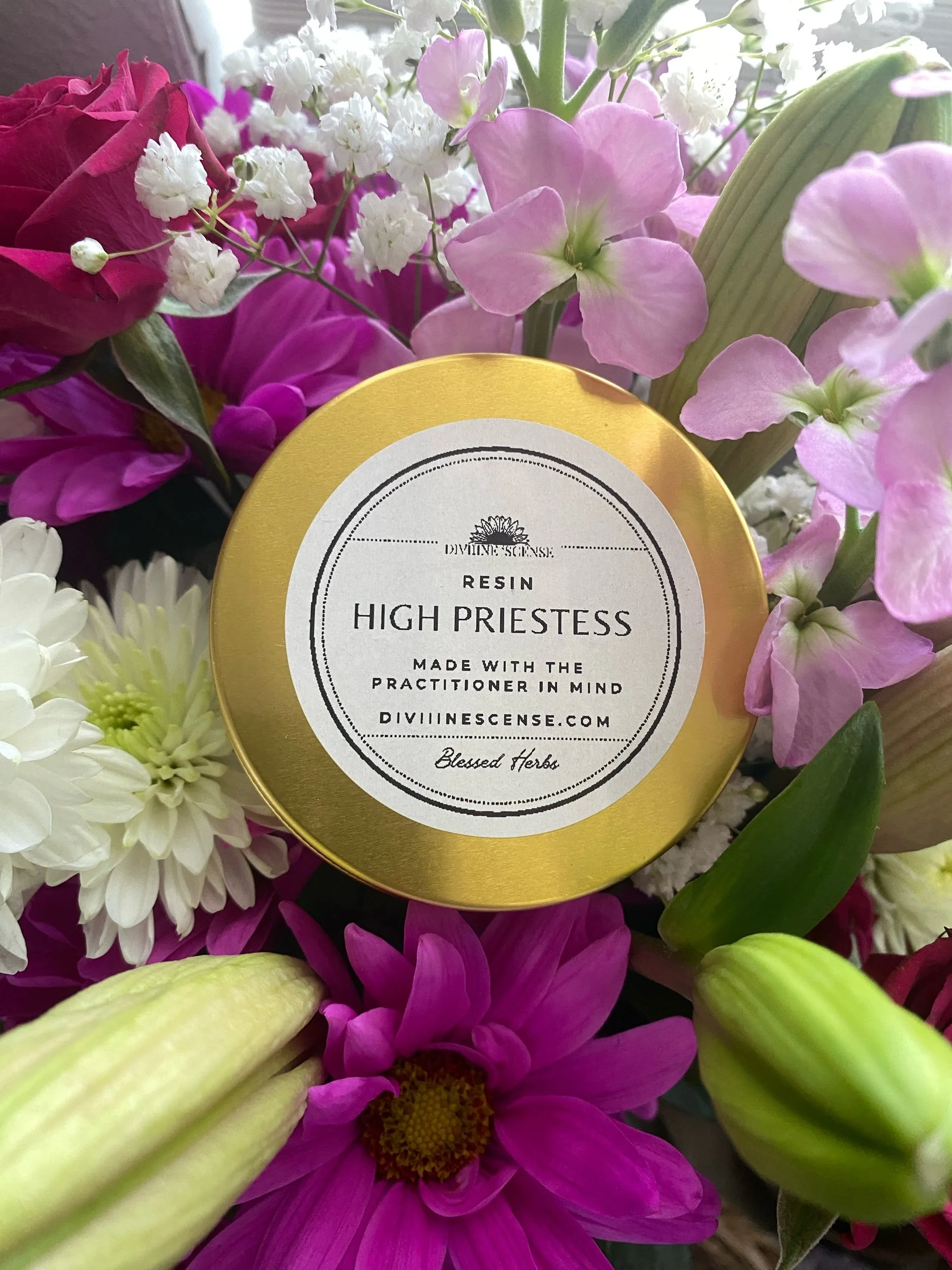 This is a organic resin blend named affectionately after the High Priestess tarot card. Symbolizing sacred knowledge, seeking guidance from within, connection to your divine gifts, and insight. High Priestess is a blend of frankincense, cloves, white copal, rosebud petals and dragons blood. Each batch has been anointed and blessed. Very powerful! A beautiful companion for bodyworkers, energy practitioners, and healers, this blend creates a grounded yet elevated atmosphere for sessions, rituals, personal practice. Comes in a reusable 2oz gold tin. Made with the practitioner in mind.